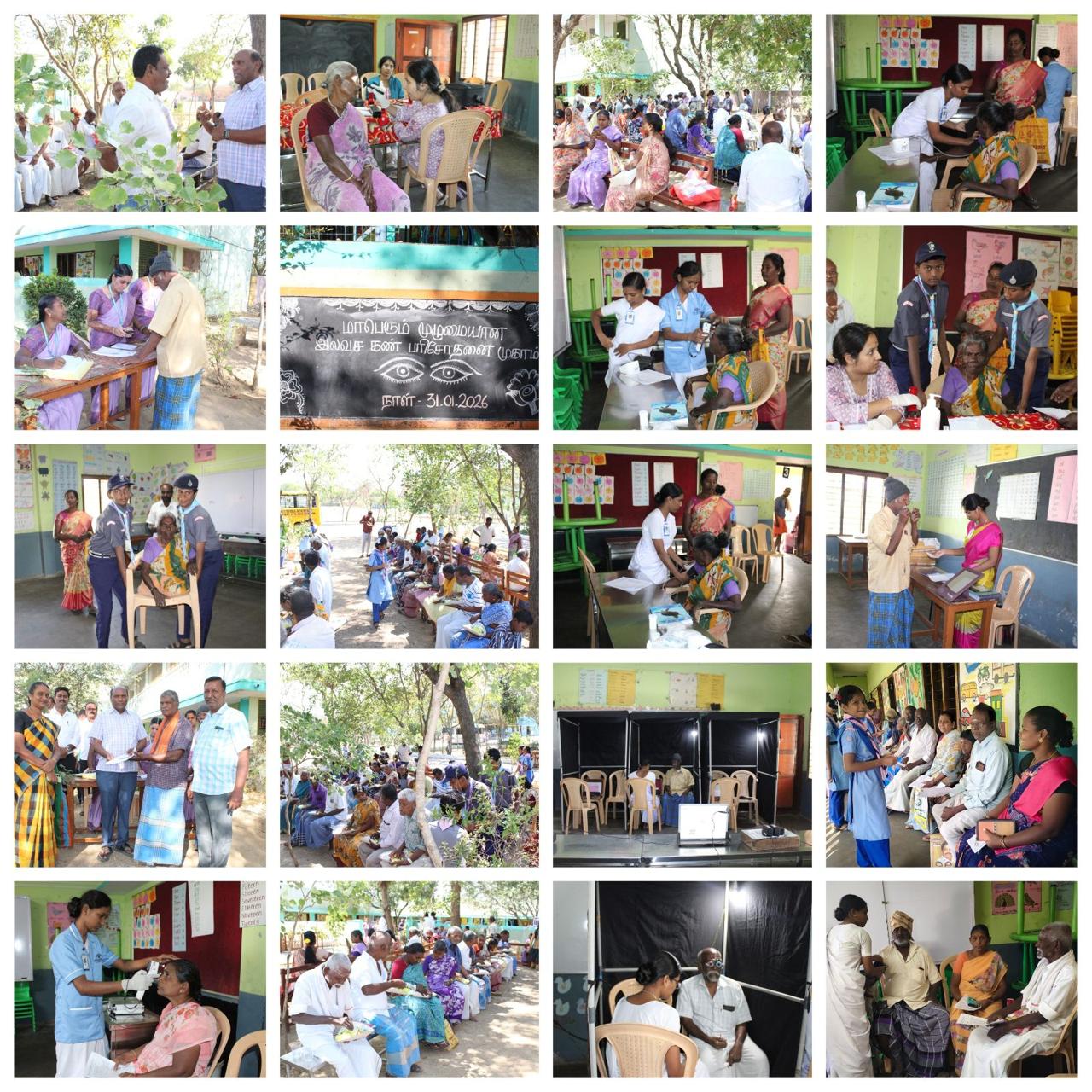 The school staff and students at St Antony's organised an eye treatment camp for people in need in the local villages in on the 31st January. People in need could attend the eye camp for free, and around 280 people received assessments and initial treatment. 20 people were then taken to Pondicherry hospital for further help. Click the image to see some of the activities in more detail.